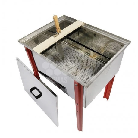 Comprenant : un bac avec 1 couvercle inox, 1 grille d’égouttage des opercules et 1 traverse de désoperculation en bois.