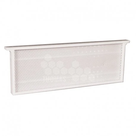 Durable et léger, il présente aussi l’avantage d’offrir une plus grande surface pour le stockage du miel par rapport à un cadre classique (une surface de 9% supplémentaires environ). L’épaisseur des bords de ce cadre en plastique empêche les abeilles de construire à l’extérieur du cadre.