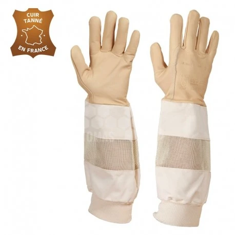 Ces gants en cuir épais sont munis d’une manchette en coton d’une longueur de 29 cm environ. Le poignet est renforcé ce qui maintien l’aération éloignée.
