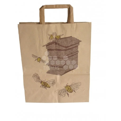 Ce sac à bretelles en papier kraft avec décor abeilles vous permettra de mettre en valeurs vos produits en vente.