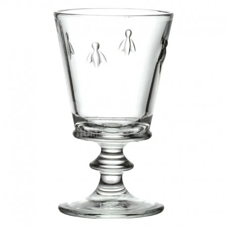 Verre à pied en verre pressé Vert Olive, teinté dans la masse et décoré de quatre abeilles. Cette collection reprend les symboles de la maroquinerie de Napoléon.